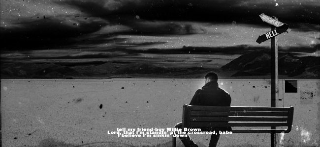 I was working on this for something else, but the larger piece wouldn't come together, and seeing as I'd already invested time and effort in it, I thought I might as well try to get a header out of the thing. There's a completely textful version, as well as a textless, and two with textual permutations. I love Dean and the blues, what can I say?